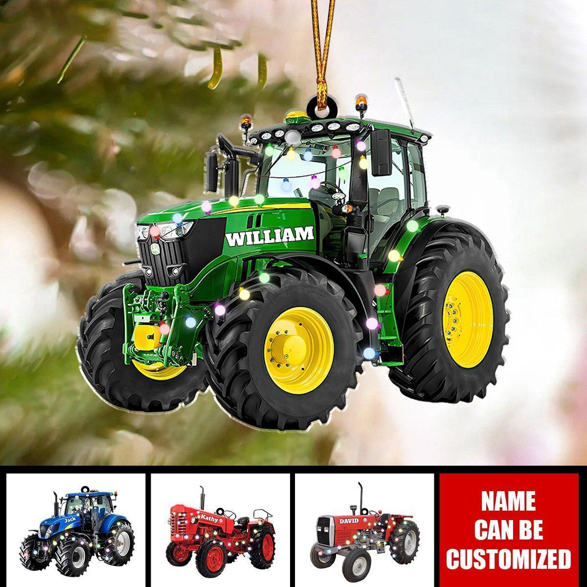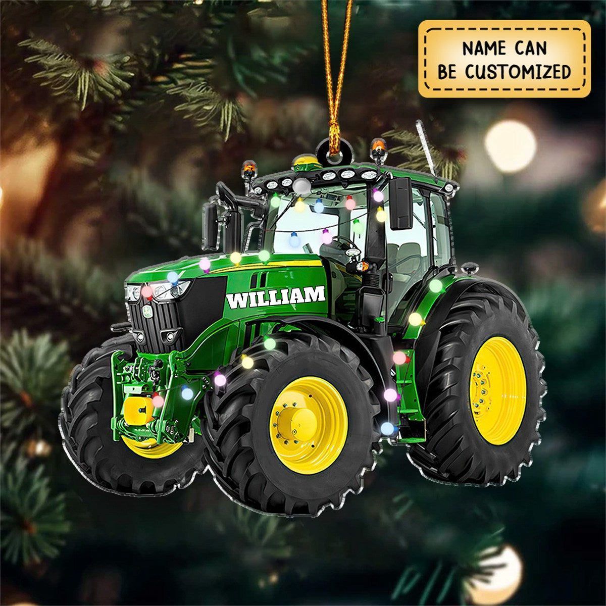 Farm tractor with Christmas lights – personalized ornament