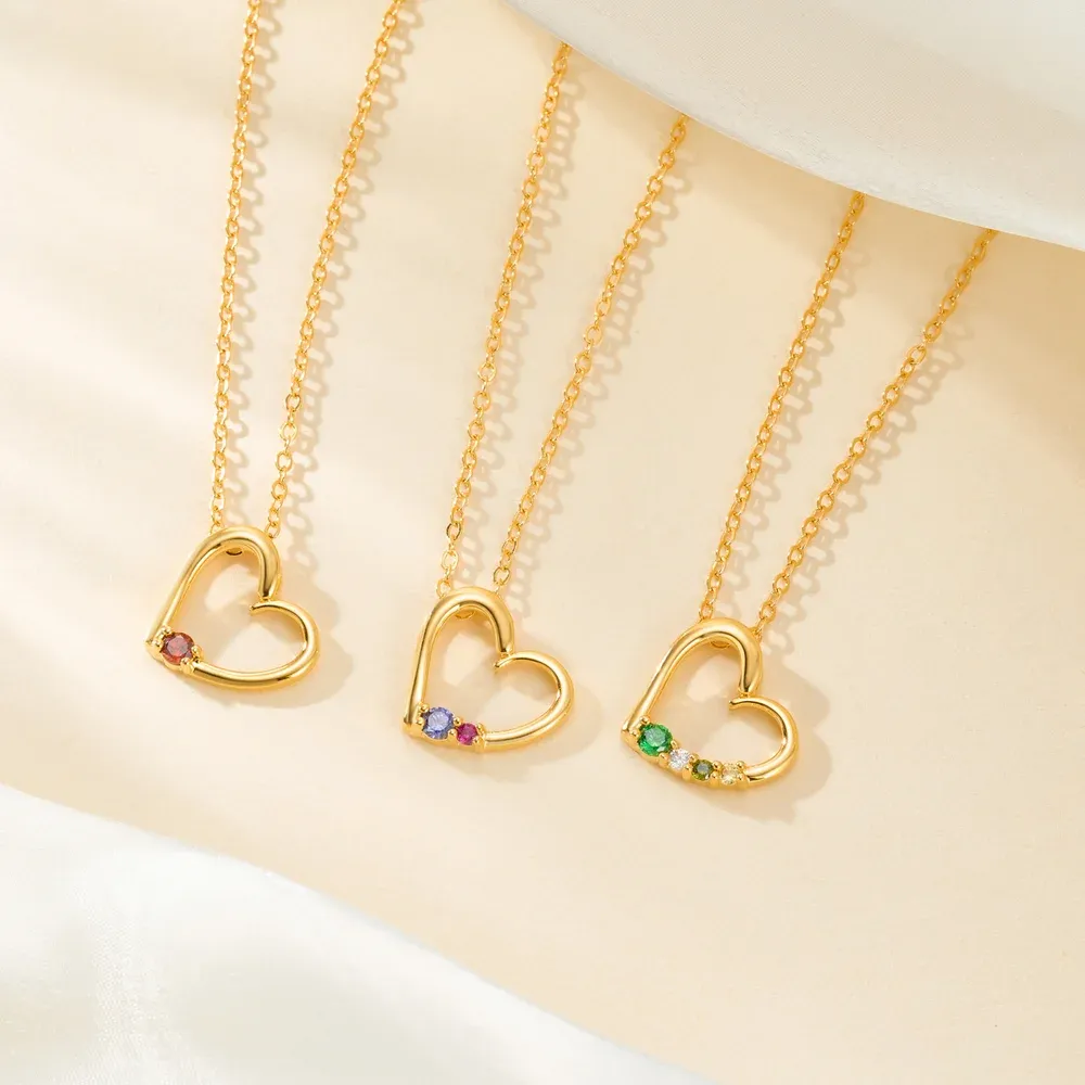 Personalised 1-10 Family Birthstones Heart Necklace Dainty Jewellery Birthday Anniversary Mother's Day Gift for Grandma Mother