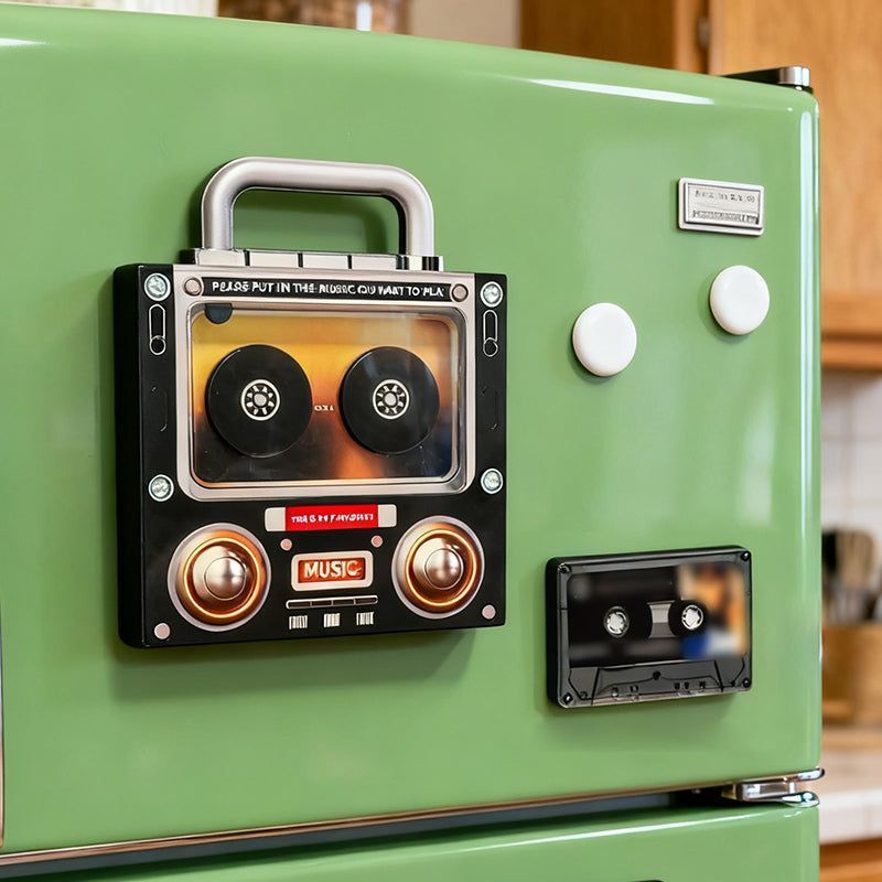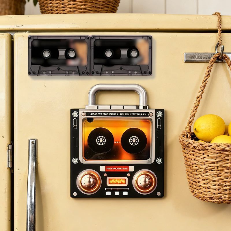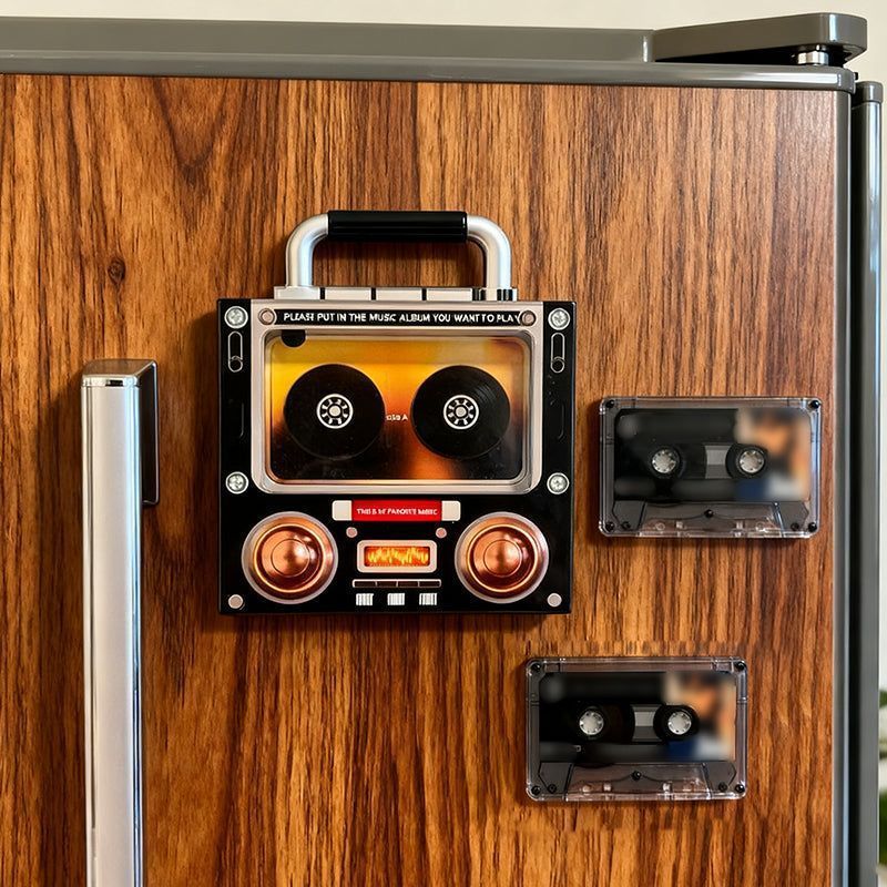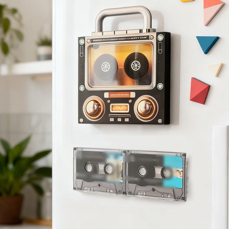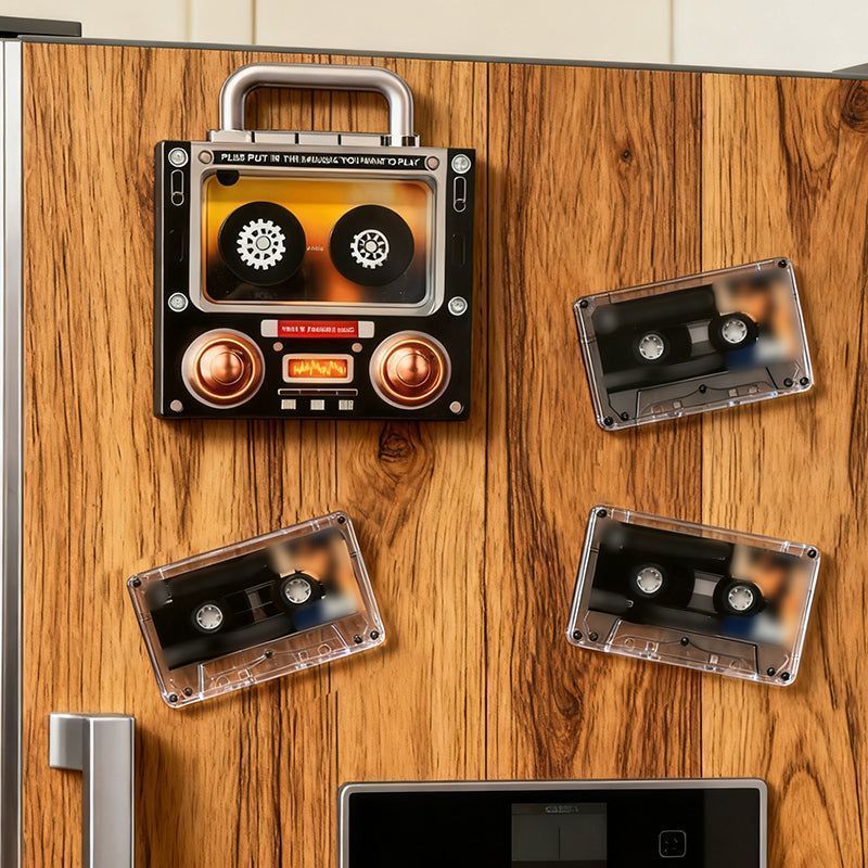 Personalized fridge magnet in the form of a retro cassette with music playback function