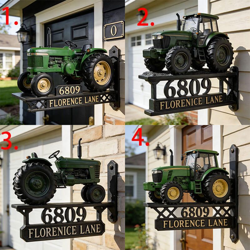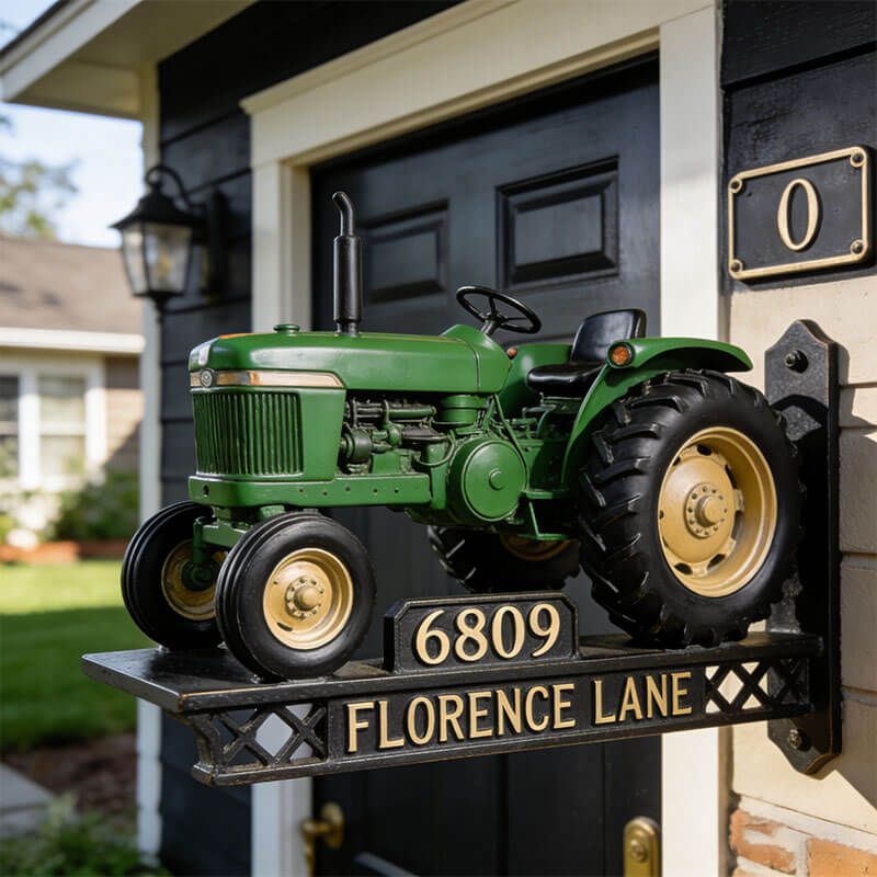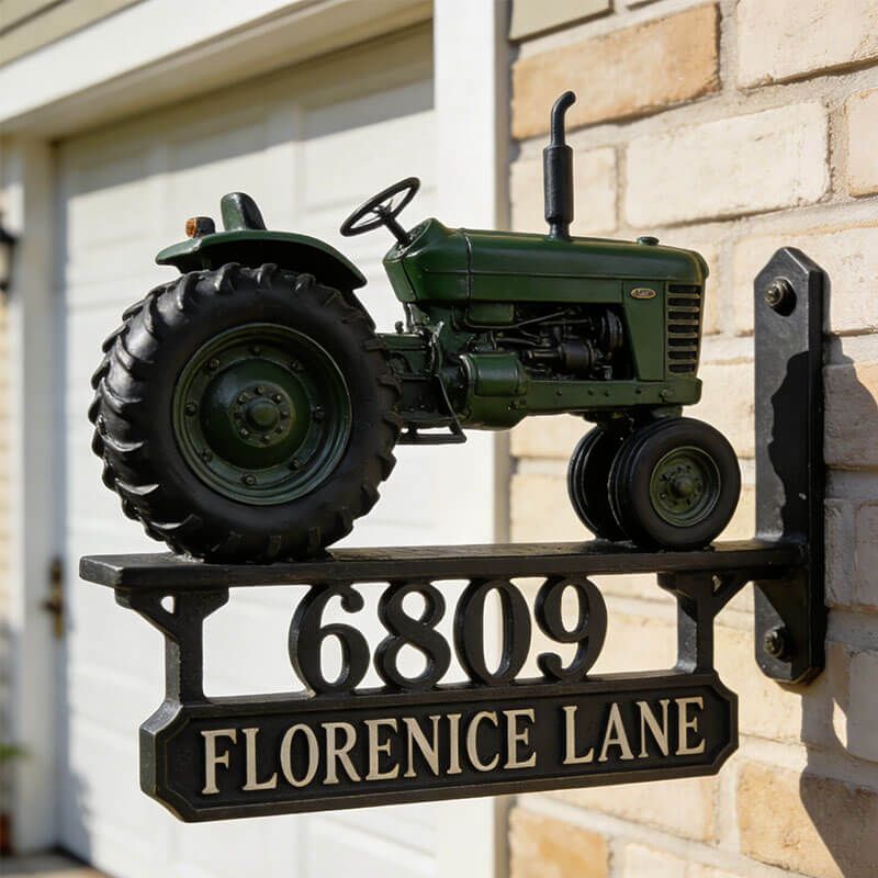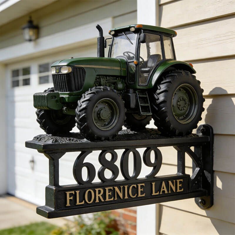 Customized tractor-themed address sign decoration