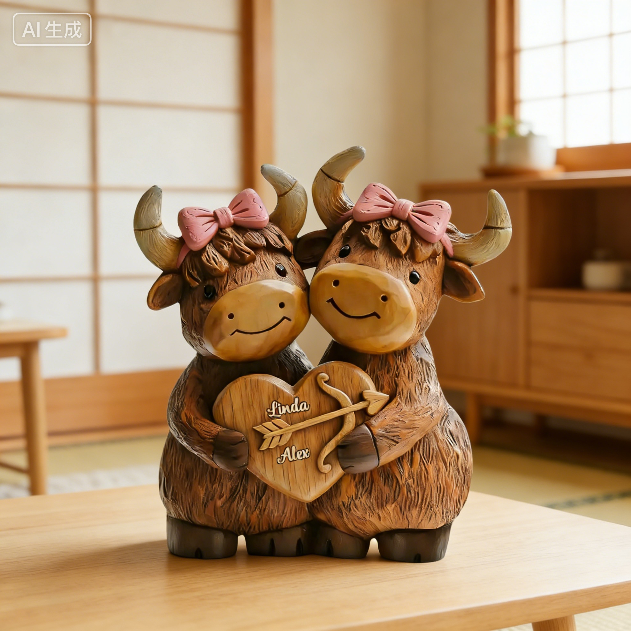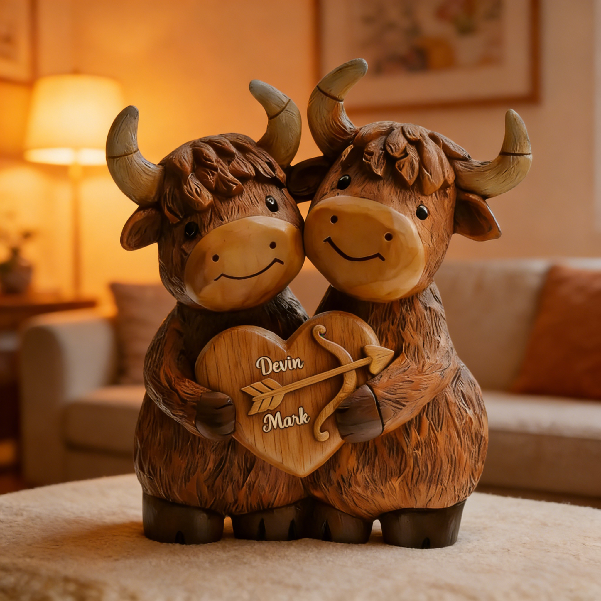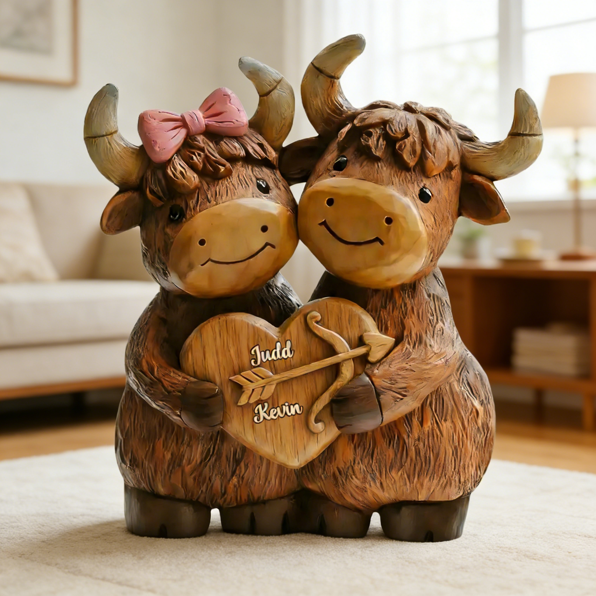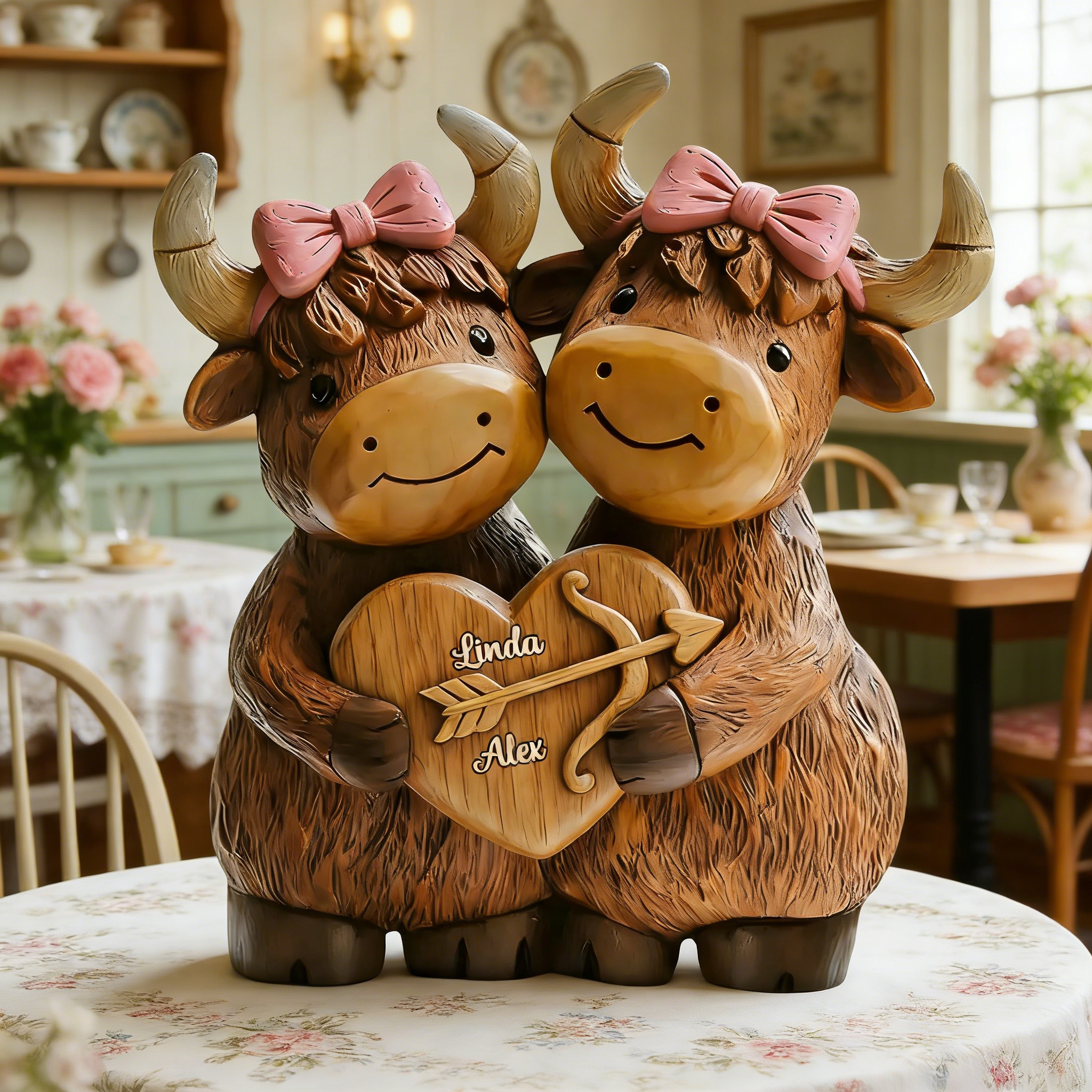 Adorable Scottish Highland cattle couple - Personalized plaque