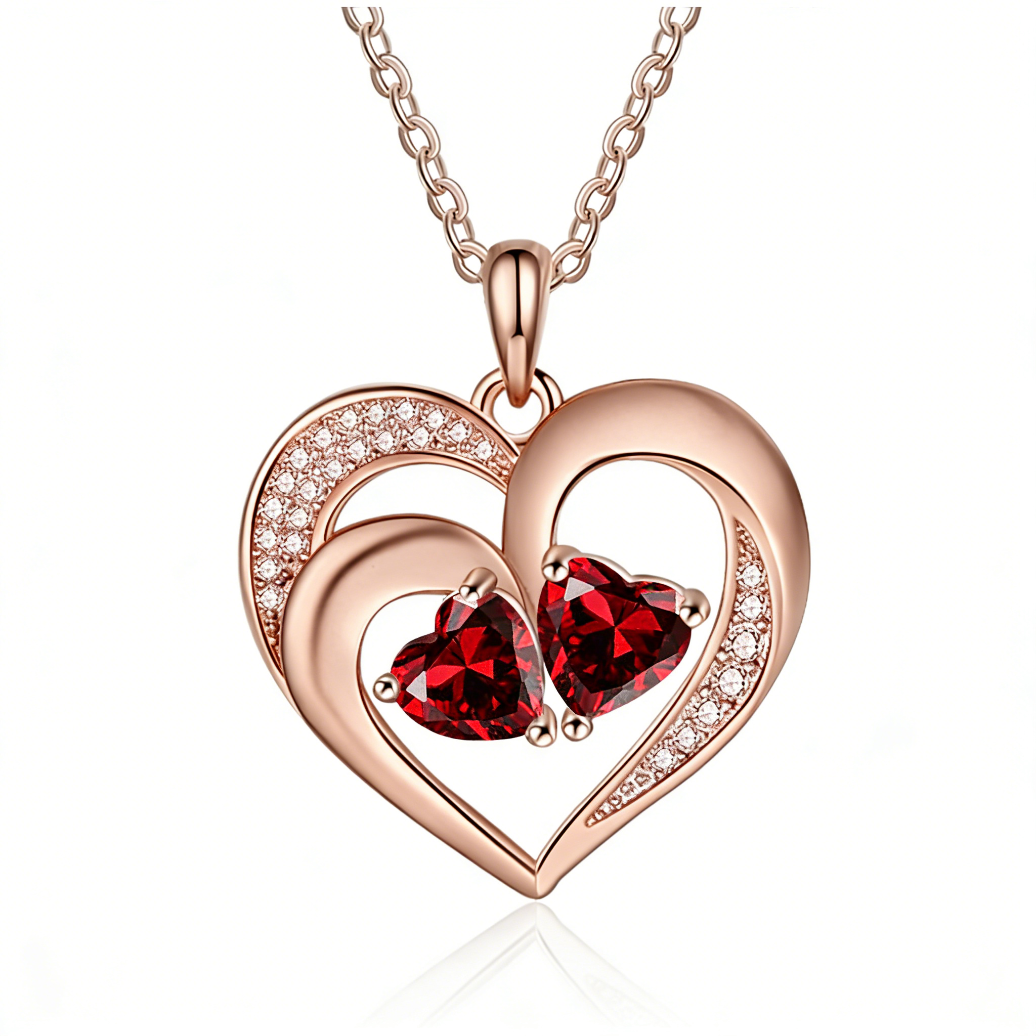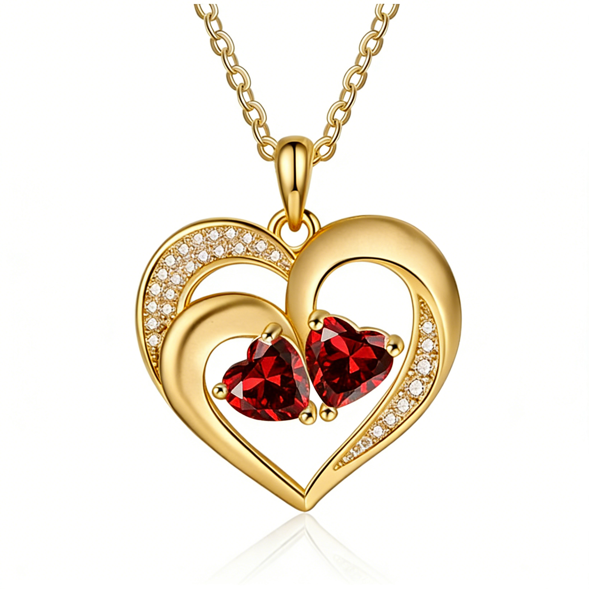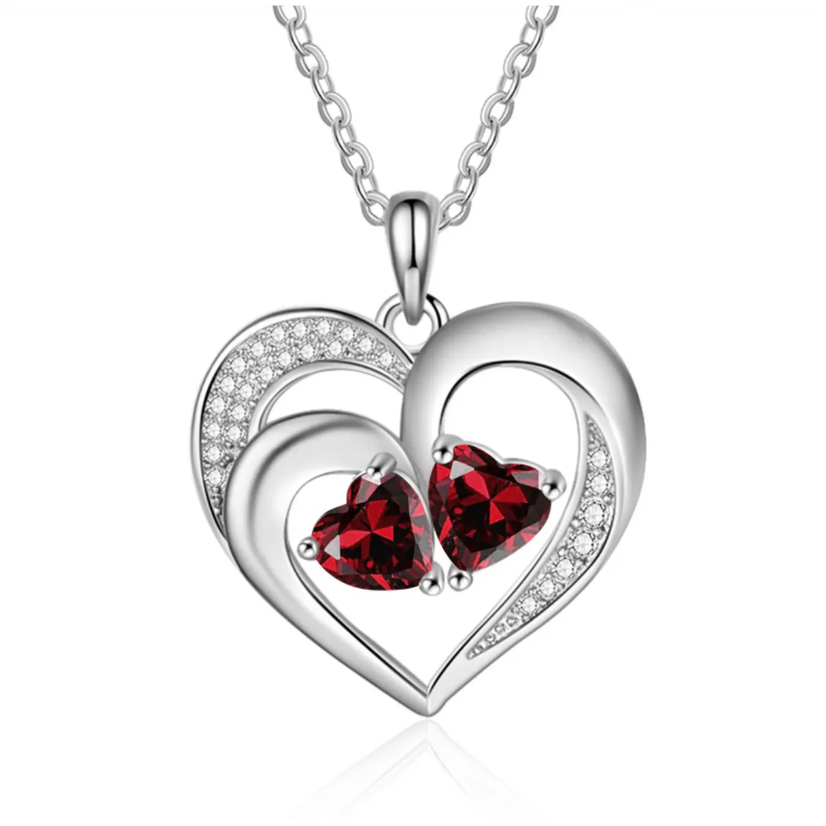 Personalized Heart-Shaped Name Birthstone Couple Necklace