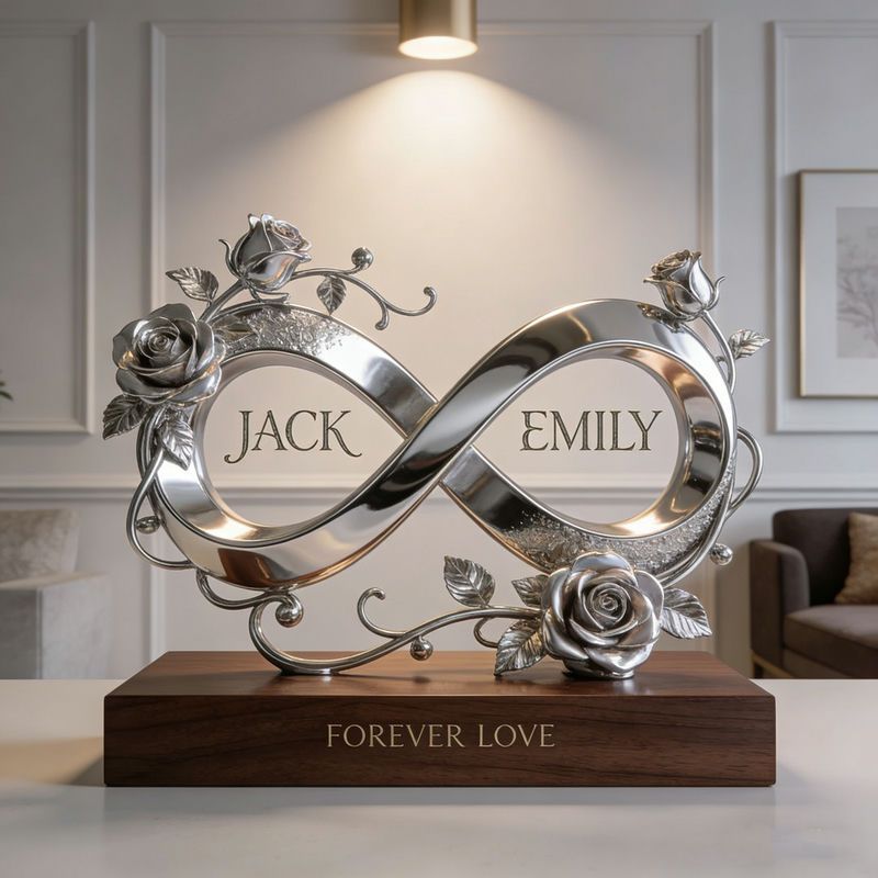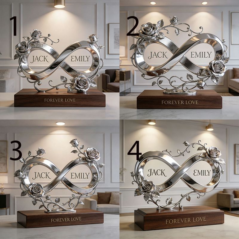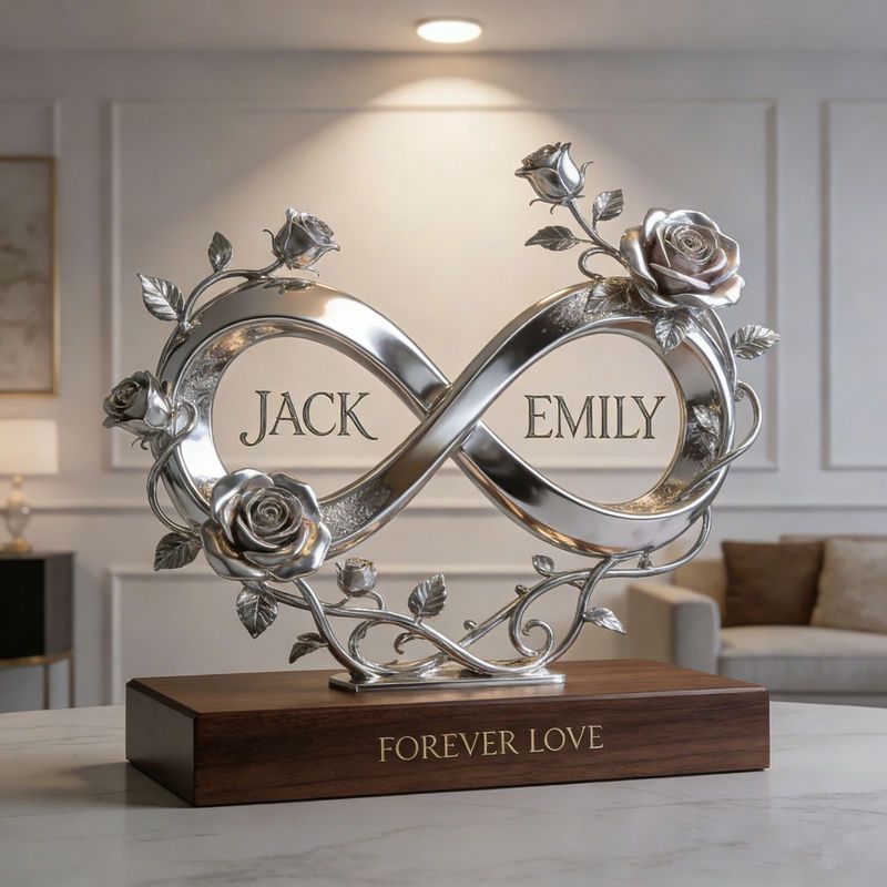 Custom-made infinity symbol rose-themed couple sculpture&ornament.