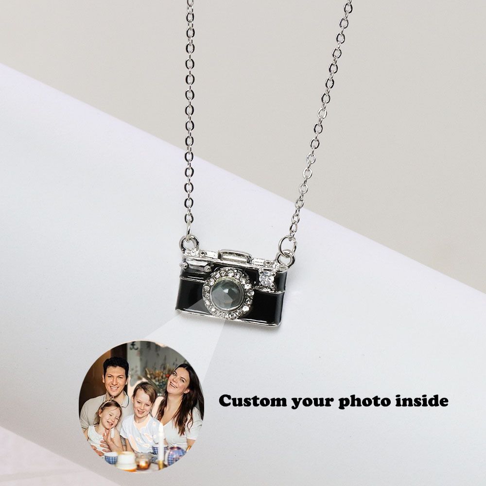 Vintage camera projector pendant necklace with I love you in 100 languages.personalized photo custom jewelry.